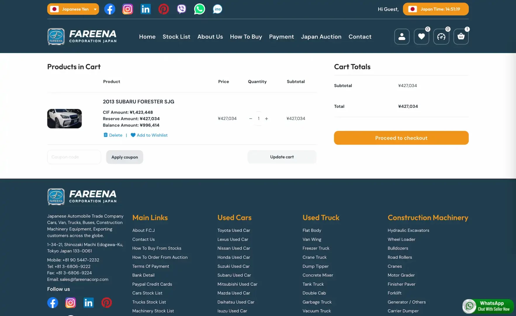 All customers should send money only to Fareena Corporation Ltd beneficiary accounts in Japan. It will be shown in the proforma invoice, to which one of the following accounts, that you need to pay